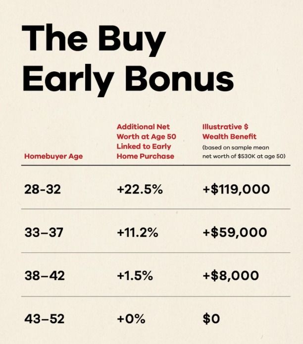 Another major reason comes down to timing. Research shows that buying a home earlier in life can lead to significantly higher net worth later on. People who purchase a home by age 30 tend to have more wealth by age 50 compared to those who wait until their 40s. This is because they have more time to build equity and benefit from rising home values.